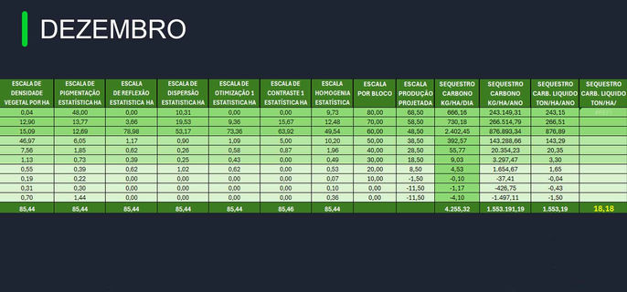 Análises de pigmentação e Sequestro de Carbono
